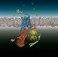 - ↑ Daniel M. Rosenbaum; Cheng Zhang; Joseph A. Lyons; et al. (2011). "Structure and function of an irreversible agonist-β2 adrenoceptor complex". Nature. 469 (7329): 236–240. Bibcode:2011Natur.469..236R. doi:10.1038/nature09665. PMC 3074335. PMID 21228876.