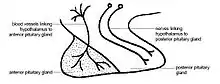 George Oliver and Edward Albert Schafer were among the first researchers to document its endocrine functions.[73] In the first two decades of the 20th century, however, a number of conflicting reports on the diuretic versus anti-diuretic properties of the pituitary extract caused confusion in the field.[74][75] A general agreement was reached that some of the results that reported diuresis was due to increased pressure and blood flow to the kidney, while the posterior pituitary extract had an antidiurectic effect.[76] By the 1920s, accumulated findings defined diabetes insipidus as a disorder of the pituitary.[25]
