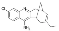 Huprine X is a synthetic cholinergic compound developed as a hybrid between the natural product Huperzine A and the synthetic drug tacrine. It is one of the most potent reversible inhibitors of acetylcholinesterase known, with a binding affinity of 0.026nM,[1] as well as showing direct agonist activity at both nicotinic and muscarinic acetylcholine receptors.[2][3] In animal studies it has nootropic and neuroprotective effects, and is used in research into Alzheimer's disease,[4][5][6][7] and although huprine X itself has not been researched for medical use in humans, a large family of related derivatives have been developed.[8][9][10]