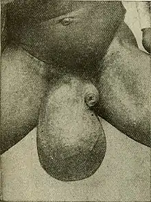 This usually occurs as a result of an underlying condition, such as infection (filariasis, tuberculosis of the epididymis, syphilis), injury (trauma, post-herniorrhaphy hydrocele), or cancer.[2] This type of hydrocele tends to be small, with the exception of secondary hydrocele due to filariasis, which can be very large.[2]