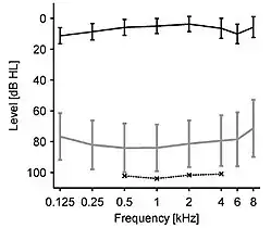 - ↑ Sheldrake, Jacqueline (May 15, 2015). "Audiometric Characteristics of Hyperacusis Patents". Frontiers in Neurology. 6: 105. doi:10.3389/fneur.2015.00105. PMC 4432660. PMID 26029161.