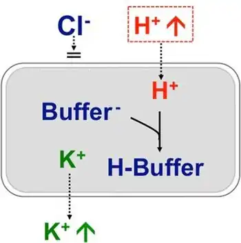 Effect of hyperchloremic metabolic acidosis on circulating K+ level(some extracellular H+ shifts into the intracellular space)[2]