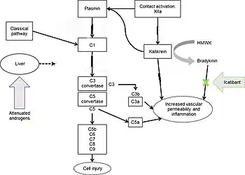 - ↑ Longhurst HJ (September 2010). "Management of acute attacks of hereditary angioedema: potential role of icatibant". Vascular Health and Risk Management. 6: 795–802. doi:10.2147/vhrm.s4332. PMC 2941790. PMID 20859548.