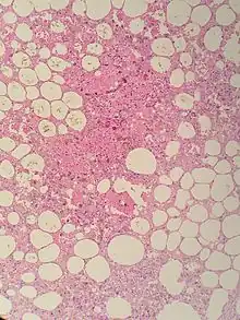 Sclerosing mesenteritis - note the hemosiderin, chronic inflammation | |