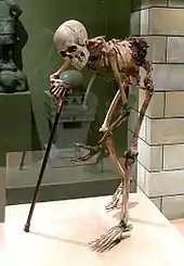 Scoliosis may be a byproduct of strong selection for bipedalism. For a bipedal stance, a highly mobile, elongated lower spine is very beneficial.[61] For instance, the human spine takes on an S-shaped curve with lumbar lordosis, which allows for better balance and support of an upright trunk.[62] Selection for bipedality was likely strong enough to justify the maintenance of such a disorder. Bipedality is hypothesized to have emerged for a variety of different reasons, many of which would have certainly conferred fitness advantages. It may increase viewing distance, which can be beneficial in hunting and foraging as well as protection from predators or other humans; it makes long-distance travel more efficient for foraging or hunting; and it facilitates terrestrial feeding from grasses, trees, and bushes.[63] Given the many benefits of bipedality which depends on a particularly formed spine, it is likely that selection for bipedalism played a large role in the development of the spine as we see it today, in spite of the potential for "scoliotic deviations".[61] According to the fossil record, scoliosis may have been more prevalent among earlier hominids such as Australopithecus and Homo erectus, when bipedality was first emerging. Their fossils indicate that there may have been selected over time for a slight reduction in lumbar length to what we see today, favouring a spine that could efficiently support bipedality with a lower risk of scoliosis.[61]