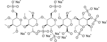 • CO[C@@H]1[C@H](O[C@@H]([C@@H]([C@H]1OC)OC)O[C@H]2[C@@H]([C@H]([C@@H](O[C@@H]2C(=O)[O-])O[C@@H]3[C@H](O[C@@H]([C@@H]([C@H]3OS(=O)(=O)[O-])OS(=O)(=O)[O-])O[C@H]4[C@@H]([C@H]([C@@H](O[C@H]4C(=O)[O-])O[C@@H]5[C@H](O[C@@H]([C@@H]([C@H]5OS(=O)(=O)[O-])OS(=O)(=O)[O-])OC)COS(=O)(=O)[O-])OC)OC)COS(=O)(=O)[O-])OC)OC)COS(=O)(=O)[O-].[Na+].[Na+].[Na+].[Na+].[Na+].[Na+].[Na+].[Na+].[Na+]