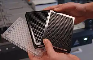 Susceptible cells are inoculated with serial logarithmic dilutions of samples in a 96-well plate. After viral growth, viral detection by IPA yields the infectious virus titer, expressed as tissue culture infectious dose (TCID50). This represents the dilution of a virus-containing sample at which half of a series of laboratory wells contain replicating viruses. This technique is a reliable method for the titration of human coronaviruses (HCoV) in biological samples (cells, tissues, or fluids). It is also reliable in the detection of antibodies to human cytomegalovirus.[1][2]