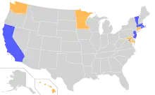 In 2018, as a response to the cancellation of the individual mandate penalty on the federal level, a number of states and the District of Columbia considered legislation to create state or local requirements. Massachusetts had never stopped its penalty for not carrying coverage, and maintained it post-ACA, in addition to the federal penalty associated with the ACA. After the 2018 dropping of the federal penalty, the state penalty continues to exist in Massachusetts.[18] New Jersey and the District of Columbia passed legislation to penalize individuals for not having health insurance starting from 2019. California, Rhode Island, and Vermont also passed similar legislation that would apply to years 2020 and onward. Other states that considered similar measures include Connecticut, Hawaii, Maryland, Minnesota, and Washington.[19][20]