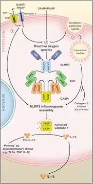 Inflammasome Activation and Assembly Release of ROS and pro-inflammatory cytokine secretion in response to inflammasome assembly after DAMP / PAMP binding
