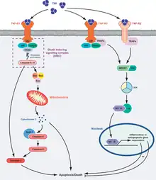 TNF Mediated Cell Survival and Death Pathway TNF alpha binding to receptors induces apoptosis and necrosis through various signaling pathways.