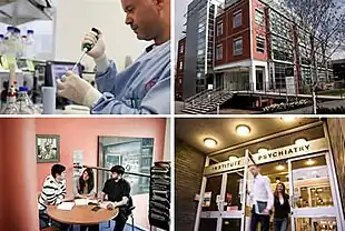 The Maurice Wohl Clinical Neuroscience Institute focuses on the development of new treatments to patients affected by neurodegenerative diseases (such as Alzheimer's disease, Parkinson's disease and motor neurone disease), mental disorders (depression, schizophrenia) and neurological diseases (including epilepsy and stroke), and the understanding of disease mechanisms.[12][11] The research institute has 250 clinicians and research scientists from neuroimaging, neurology, psychiatry, genetics, molecular and cellular biology and drug discovery.[11]