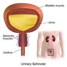The internal urethral sphincter is a urethral sphincter muscle which constricts the internal urethral orifice. It is located at the junction of the urethra with the urinary bladder and is continuous with the detrusor muscle,[1][2] but anatomically and functionally fully independent from it.[3] It is composed of smooth muscle, so it is under the control of the autonomic nervous system, specifically the sympathetic nervous system.