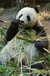 Fetuses of the giant panda (left[note 1]) have been grown in the womb of a cat (right[note 1]) by intercurrently inserting panda and cat embryos into the cat womb.[11]