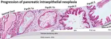 Progression of pancreatic intraepithelial neoplasia, including mutations.[1]