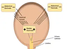 Electromotive drug administration utilizes a small electric current flowing across the bladder wall between two electrodes, one on the skin and one placed inside the bladder via catheterization, to enhance permeability of aqueous solutions.[1][2][3] Electromotive drug administration best enhances ionized formulations, which diffuse poorly using standard passive diffusion.[3] This allows it to potentially assist in the delivery of many drugs that usually perform poorly in the bladder without having to change their formulations heavily. Across multiple studies and clinical trials electromotive drug administration has been shown to increase the uptake of many drugs, showing potential use in bladder cancer, urinary incontinence, urinary cystitis and pain management.[1][2][3][5] Cost of local anesthesia for bladder distention using electromotive drug administration in combination with lidocaine has been shown to be cheaper and more practical than general anesthesia or spinal anesthesia.[5]