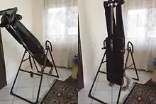 ![]() Foldable inversion table, extended and set up for use. | |