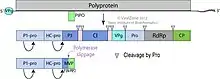 Member viruses encode a single polypeptide with a predicted molecular weight of 390 kilodaltons (kDa) which is cleaved into ~10 proteins. In 5'–3' order these proteins are