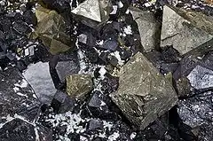 Both FeO and γ-Fe2O3 have a similar cubic close packed array of oxide ions and this accounts for the ready interchangeability between the three compounds on oxidation and reduction as these reactions entail a relatively small change to the overall structure.[4] Fe3O4 samples can be non-stoichiometric.[4]
