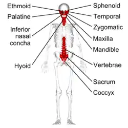 ![]() Irregular bones in human skeleton. (shown in red). | |