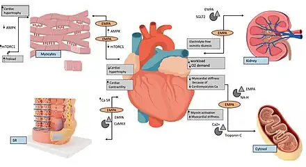 - ↑ Verma S, McMurray JJ (October 2018). "SGLT2 inhibitors and mechanisms of cardiovascular benefit: a state-of-the-art review". Diabetologia. 61 (10): 2108–2117. doi:10.1007/s00125-018-4670-7. PMID 30132036.