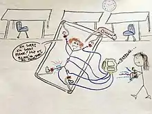 In 2002, Andre McCollins, a New York City autistic teenager, was restrained on a four-point board and shocked 31 times over the course of seven hours. The first shock was given after he did not take off his coat when asked and the subsequent thirty shocks were given as punishments for screaming and tensing up while being shocked.[68] In the video, McCollins can be heard shouting "Someone, help me, please!" The JRC staff listed this as a "major disruptive behavior", for which he was administered a GED shock.[69] The day after the incident, McCollins' mother had to drive him to the hospital, as he was unable to speak and had burns on many parts of his body. The doctor diagnosed him with acute stress disorder, which was a direct result of the center's aversives. His mother subsequently claimed that "There is no counseling for the [residents] there... and the staff there lied to [her] all these years..."[70][71]