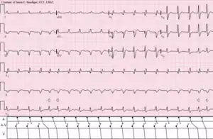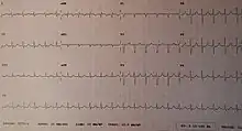 - ↑ Aehlert, Barbara (2013). ECGs Made Easy (5th ed.). Elsevier. p. 160. ISBN 9780323170574.