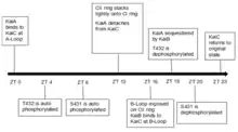 - ↑ Pattanayek R, Mori T, Xu Y, Pattanayek S, Johnson CH, Egli M (November 2009). "Structures of KaiC circadian clock mutant proteins: a new phZosphorylation site at T426 and mechanisms of kinase, ATPase and phosphatase". PLOS ONE. 4 (11): e7529. Bibcode:2009PLoSO...4.7529P. doi:10.1371/journal.pone.0007529. PMC 2777353. PMID 19956664.