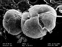 Karlodinium is a genus of athecate dinoflagellates that lives worldwide.[1] They are often toxin producing, and compared to the other members of the Kareniaceae, are fairly small at <8-15 µm diameter. They are also able to form intense algal blooms.[2] This species relies of photosynthesis and phagotrphy to grow.[3]