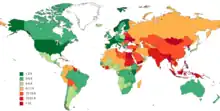 In South Korea, the term gwarosa (Korean: 과로사; Hanja: 過勞死; alternatively romanised as kwarosa) is also used to refer to death by overworking. South Korea has some of the longest working hours in the world, even more so than Japan with the average being 42.[34] This has caused many workers to feel the pressure of their jobs which has taken a toll on both their physical and mental health. Many have died from being overworked and the issue has only begun to gain more national attention due to many government workers having died from gwarosa.[35] In 2018, the South Korean government enacted a law cutting working hours from 68 to 52.[36]