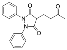 Kebuzone (or ketophenylbutazone) is a nonsteroidal anti-inflammatory drug (NSAID) that is used for the treatment of inflammatory conditions such as thrombophlebitis and rheumatoid arthritis (RA).[1][2][3]