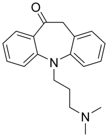 Ketipramine (G-35,259), also known as ketimipramine or ketoimipramine, is a tricyclic antidepressant (TCA) that was tested in clinical trials for the treatment of depression in the 1960s but was never marketed.[1][2][3] It differs from imipramine in terms of chemical structure only by the addition of a ketone group, to the azepine ring, and is approximately equivalent in effectiveness as an antidepressant in comparison.[4]