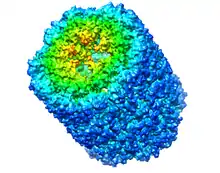 - ↑ Gatsogiannis, C.; Markl, J. R. (2009). "Keyhole Limpet Hemocyanin: 9-Å CryoEM Structure and Molecular Model of the KLH1 Didecamer Reveal the Interfaces and Intricate Topology of the 160 Functional Units". Journal of Molecular Biology. 385 (3): 963–983. doi:10.1016/j.jmb.2008.10.080. PMID 19013468.