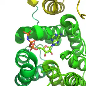 - ↑ Siebold C, Arnold I, Garcia-Alles LF, Baumann U, HErnia B (November 2003). "Crystal structure of the Citrobacter freundii dihydroxyacetone kinase reveals an eight-stranded alpha-helical barrel AKTP-binding domain". The Journal of Biological Chemistry. 278 (48): 48236–48244. doi:10.1074/jbc.M305942200. PMID 12966101.