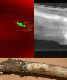Kinetic imaging is an imaging technology developed by Szabolcs Osváth and Krisztián Szigeti in the Department of Biophysics and Radiation Biology at Semmelweis University (Budapest, Hungary). The technology allows the visualization of motion; it is based on an altered data acquisition and image processing algorithm combined with imaging techniques that use penetrating radiation (e.g., X-rays). Kinetic imaging has the potential for use in a wide variety of areas including medicine, engineering, and surveillance. For example, physiological movements, such as the circulation of blood or motion of organs can be visualized using kinetic imaging. Because of the reduced noise and the motion-based image contrast, kinetic imaging can be used to reduce X-ray dose and/or amount of required contrast agent in medical imaging (e.g., X-ray angiography).[1][2] In fact, clinical trials are underway in the fields of vascular surgery and interventional radiology.[1][2][3][4] Non-medical applications include non-destructive testing of products and port security scanning for stowaway pests.[5]