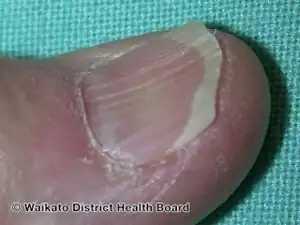 - ↑ Berker, David de (2019). "20. Diseases of the nails". In Morris-Jones, Rachael (ed.). ABC of Dermatology (7th ed.). Hoboken: Wiley Blackwell. p. 168. ISBN 978-1-119-48899-6. Archived from the original on 2023-07-01. Retrieved 2023-06-05.