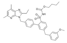 - ↑ De Witt BJ, Garrison EA, Champion HC, Kadowitz PJ (September 2000). "L-163,491 is a partial angiotensin AT(1) receptor agonist in the hindquarters vascular bed of the cat". European Journal of Pharmacology. 404 (1–2): 213–9. doi:10.1016/s0014-2999(00)00612-9. PMID 10980281.
