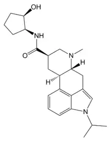 LY-215,840 is an ergoline derivative drug developed by Eli Lilly, which acts as a potent and selective antagonist at the serotonin 5-HT2 and 5-HT7 receptors. It has anti-hypertensive and muscle relaxant effects in animal studies.[1][2][3][4][5][6][7][8]