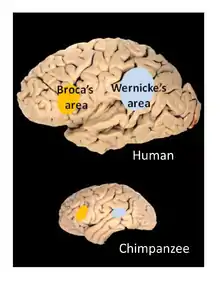 In neuroscience and psychology, the term language center refers collectively to the areas of the brain which serve a particular function for speech processing and production.[1] Language is a core system that gives humans the capacity to solve difficult problems and provides them with a unique type of social interaction.[2] Language allows individuals to attribute symbols (e.g. words or signs) to specific concepts, and utilize them through sentences and phrases that follow proper grammatical rules.[2] Finally, speech is the mechanism by which language is orally expressed.[2]