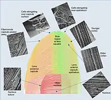 - ↑ Kuszak, J; Alcala, J; Maisel, H (December 1980). "The surface morphology of embryonic and adult chick lens-fiber cells". The American Journal of Anatomy. 159 (4): 395–410. doi:10.1002/aja.1001590406. PMID 7223675.