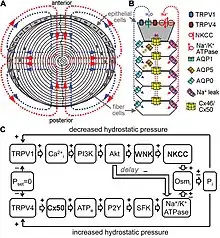 - ↑ Delamere, Nicholas A.; Shahidullah, Mohammad (31 January 2022). "Ion Transport Regulation by TRPV4 and TRPV1 in Lens and Ciliary Epithelium". Frontiers in Physiology. 12: 834916. doi:10.3389/fphys.2021.834916. PMC 8841554. PMID 35173627.