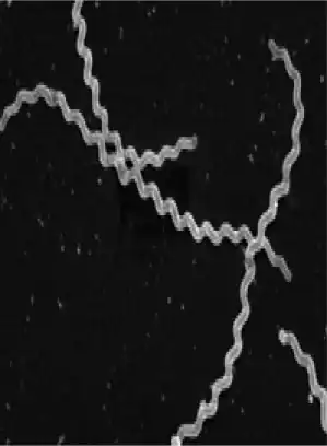 Scanning electron micrograph of Leptospira interrogans. | |