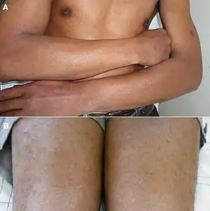 - ↑ Inamadar, Arun C.; Palit, Aparna; Ragunatha, S. (2014). Textbook of Pediatric Dermatology (2nd ed.). New Delhi: JP Medical Ltd. pp. 385–386. ISBN 978-93-5152-083-2. Archived from the original on 2022-04-06. Retrieved 2022-04-06.
