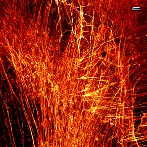 Stimulated emission depletion (STED) microscopy image of actin filaments within a cell