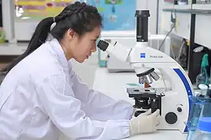 • Student microscope – an often low-power microscope with simplified controls and sometimes low-quality optics designed for school use or as a starter instrument for children.[4]