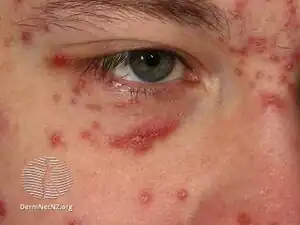 - ↑ Kuflik, Julianne H. (25 October 2022). "Acneiform Eruptions: Practice Essentials". Archived from the original on 5 December 2008. Retrieved 3 June 2023.