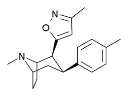 - ↑ Kozikowski, A. P.; Simoni, D.; Roberti, M.; Rondanin, R.; Wang, S.; Du, P.; Johnson, K. M. (1999). "Synthesis of 8-oxa analogues of norcocaine endowed with interesting cocaine-like activity". Bioorganic & Medicinal Chemistry Letters. 9 (13): 1831–1836. doi:10.1016/S0960-894X(99)00273-5. PMID 10406650.