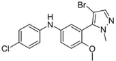 Compound 70 | 3-(4-bromo-2-methylpyrazol-3-yl)-N-(4-chlorophenyl)-4-methoxyaniline | 1.77 | 9952456 | [10] | |