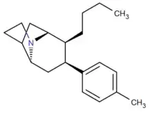 - ↑ Carroll, F.; Tyagi, S.; Blough, B.; Kuhar, M.; Navarro, H. (2005). "Synthesis and monoamine transporter binding properties of 3α-(substituted phenyl)nortropane-2β-carboxylic acid methyl esters. Norepinephrine transporter selective compounds". Journal of Medicinal Chemistry. 48 (11): 3852–3857. doi:10.1021/jm058164j. PMID 15916437.