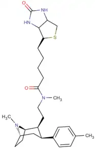 - ↑ Cesati, RR 3rd; Tamagnan, G; Baldwin, RM; Zoghbi, SS; Innis, RB; Kula, NS; Baldessarini, RJ; Katzenellenbogen, JA (2002). "Synthesis of cyclopentadienyltricarbonyl rhenium phenyltropanes by double ligand transfer: organometallic ligands for the dopamine transporter". Bioconjug Chem. 13 (1): 29–39. doi:10.1021/bc010011x. PMID 11792176.