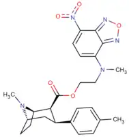 - ↑ R. H. Kline, Davies, E. Saikali, T. Sexton & S.R. Childers (1993). "Novel 2-substituted cocaine analogs: Binding properties at dopamine transport sites in rat striatum". European Journal of Pharmacology. 244 (1): 93–97. doi:10.1016/0922-4106(93)90063-f. PMID 8420793.